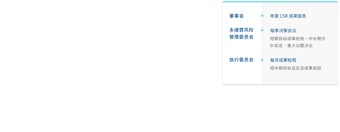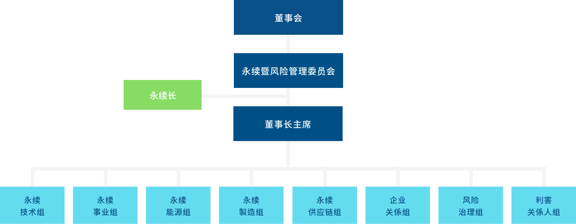 世界杯官方端网站登录入口成立永续委员会(2023年更名可持续暨风险管理委员会),作为公司永续发展运作的最高治理机构,并持续策化推动企业永续转型,透过永续长及永续专责单位,统筹中长期永续发展的策略方向。